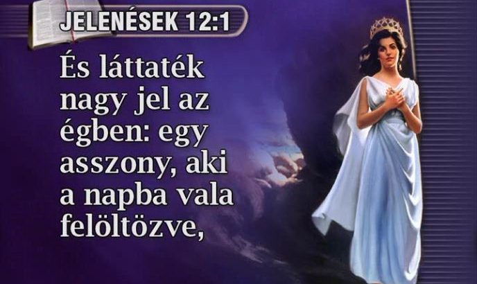 Hol található meg a tiszta egyház? Nagyon érdekesek a jelképek: Napba öltözött, csillag van a fején, holdsarló a lába alatt, azt mondja a 2. versben, hogy terhes volt, és akarván szülni kiáltott és kínlódott a szülésben.