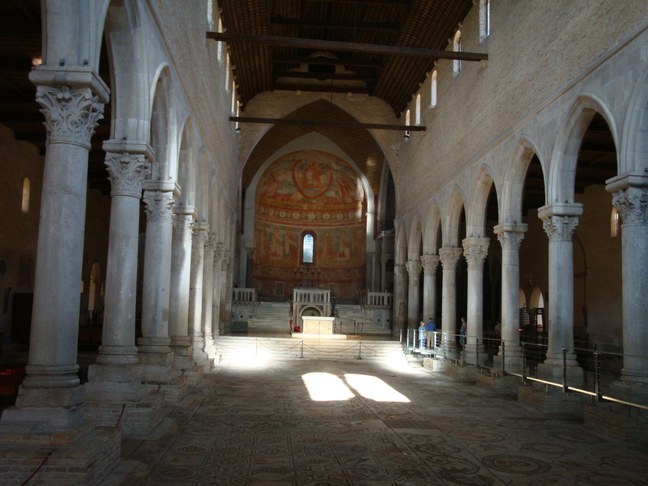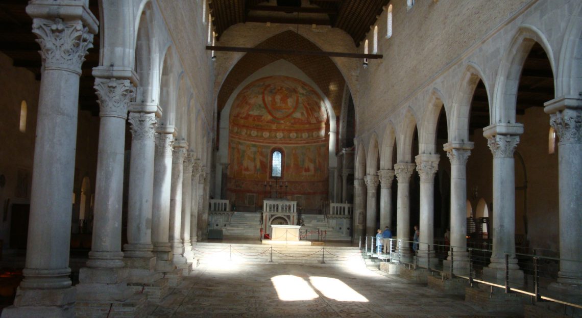 Nyitóképen az első európai katedrális főhajója. (Aquileja IV.század) ahol még nincs a későbbi korokban kialakult szószék. Csupán az oltár és mellékletei.